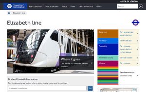2022年に開通した「エリザベス・ライン(Elizabeth line)」の案内ページ(ロンドン交通局)