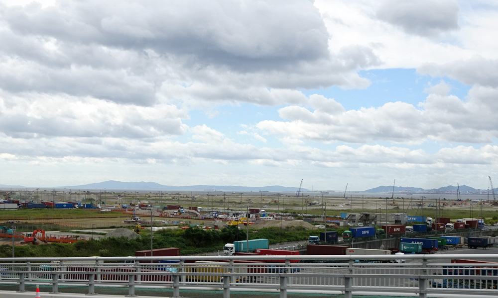 コンテナを高く積み上げた埠頭と倉庫以外は土埃の舞う荒地で、期待通りというべきか、通関や運送とイベント会場の造成工事といった業務に携わる人だけが集まる地となっていて、歩道を歩いているような珍客は自分だけ。