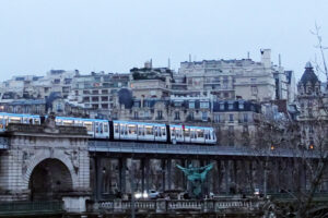 メトロではエッフェル塔の最寄りとなるビラケム駅(Bir-Hakeim)付近を走る「6号線」(2024年12月)