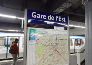 TGVやドイツ方面への国際列車が発着する「パリ東駅(Gare de l’Est)」は、隣接するパリ北駅から徒歩7~8分でアクセスできるが、メトロ線を使う場合は「4号線」「5号線」「7号線」の駅が置かれている。
