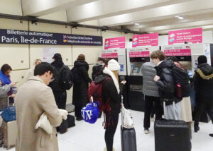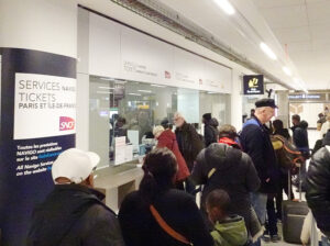 パリ北駅地下の有人窓口は長蛇の列、日本と同様に券売機の列と比べ年齢層が高い(2024年12月)