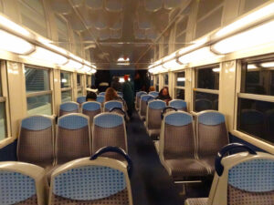 RERを走る2階建て車両の階下席は、地下区間ではより暗く感じる(2024年12月)