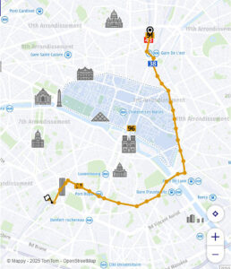 91番のバスはパリ北駅からモンパルナス駅へ真っすぐ走らずリヨン駅やオステルリッツ駅に立ち寄っているので時間を要する(RATPの経路案内「bonjour-ratp.fr」より)