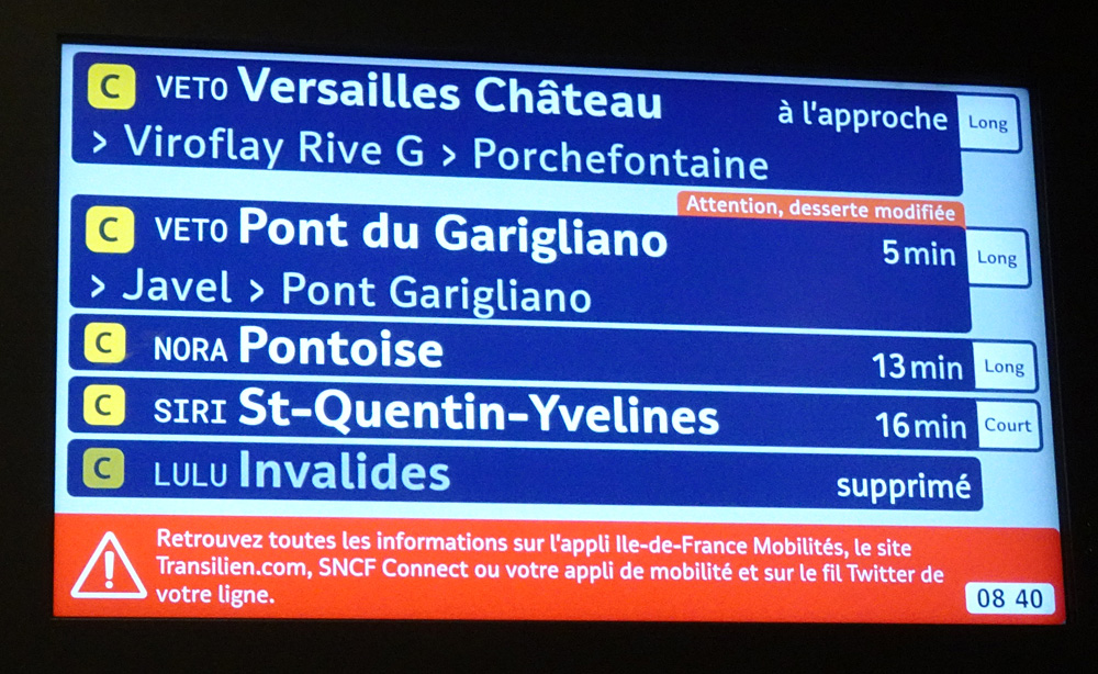 なお、中心部のサンミッシェル=ノートルダム駅からヴェルサイユ=シャトー駅までは約40分を要する。