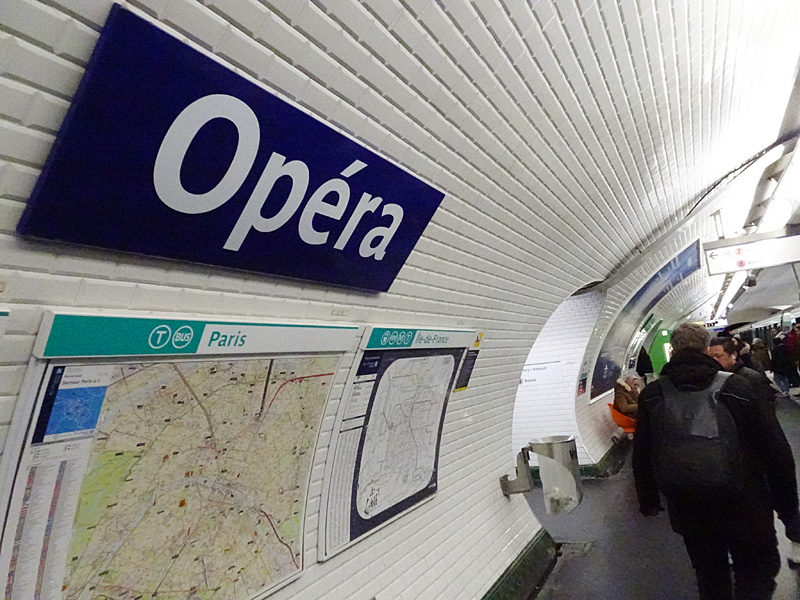 オペラ・ガルニエ(オペラ座)はメトロ「3」「7」「8」号線が交わるオペラ駅(Opéra)が近く、RER「A線」のオーベール駅(Auber)からも接続(2024年12月)