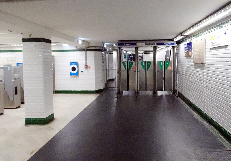 パリ市庁舎の至近に「オテル・ド・ヴィル(Hôtel de Ville)駅」を置いているあたり、トップナンバーを付けたパリ最古の地下鉄路線ならではだが、意外にも自動運転が導入されていて列車の本数も多く、時おり日本語の自動放送もあって驚かされる。RERより手軽で使いやすい。