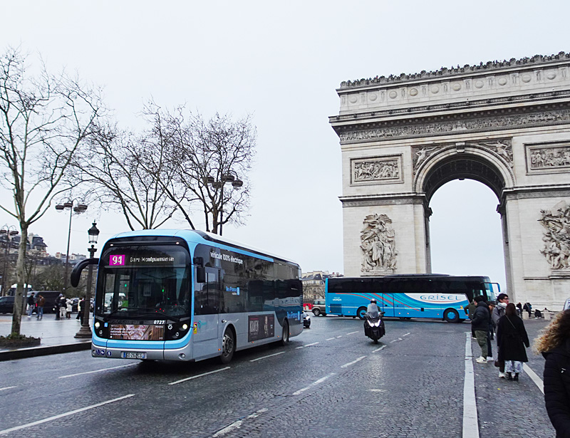パリの街を走っている公共交通は地下鉄だけではない。“市バス”は「RATPバス」とも呼ばれ、鉄道と同じRATP(パリ交通公団)が運営しており、中心部だけでも60以上の路線を持っている。