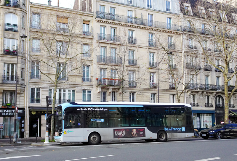 パリの“市バス(RATPバス)”は市内に60路線以上を走らせており、そこら中で見かける(2024年12月)